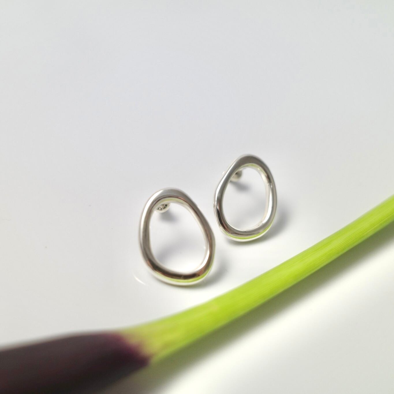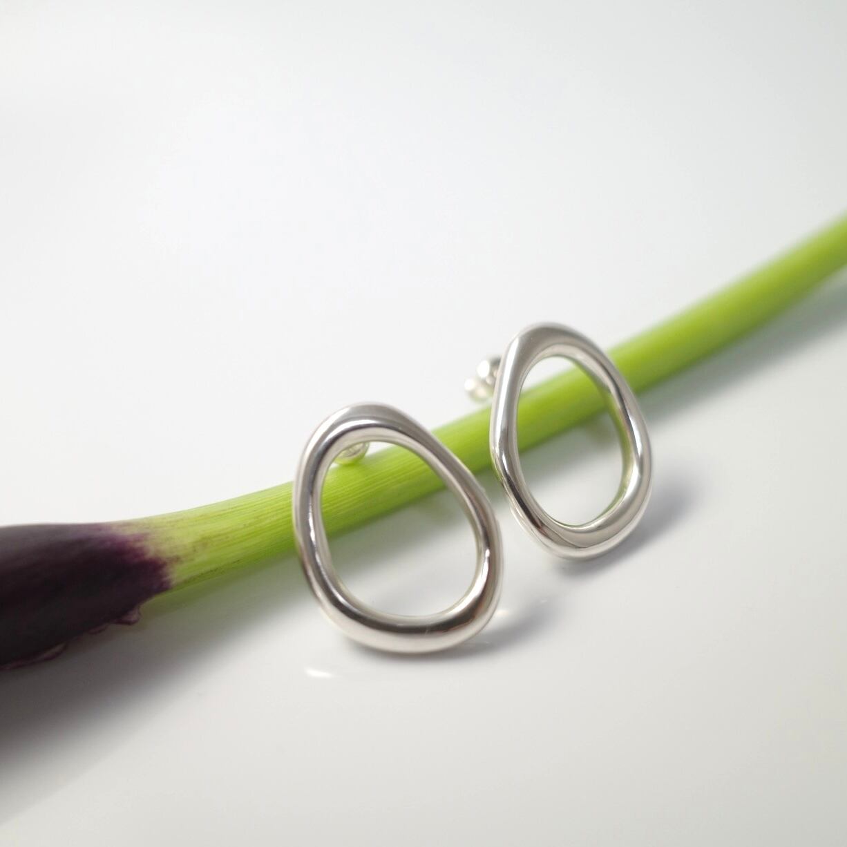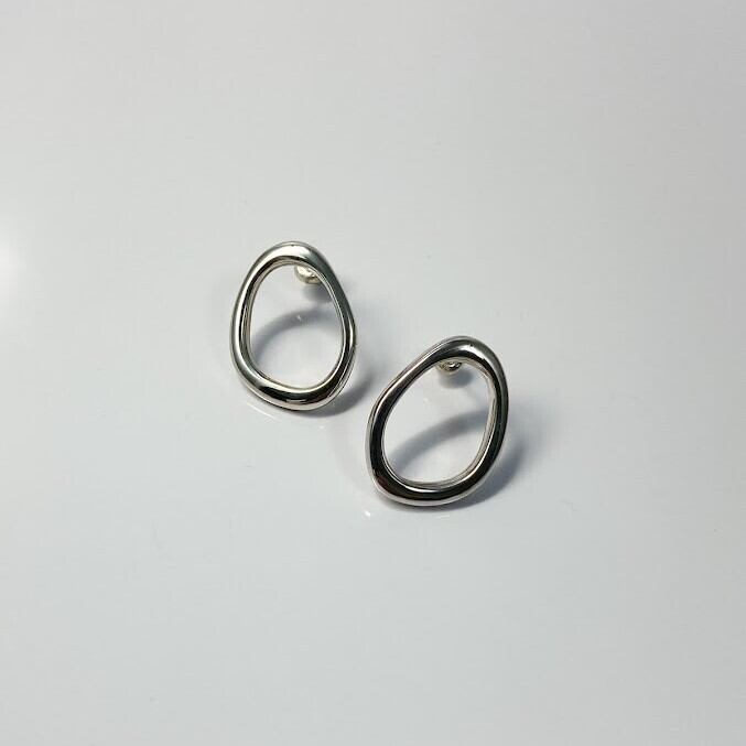 正面から見たときの美しいシルエットと、線の強弱が生み出す繊細な立体感にこだわって仕上げたピアスです。