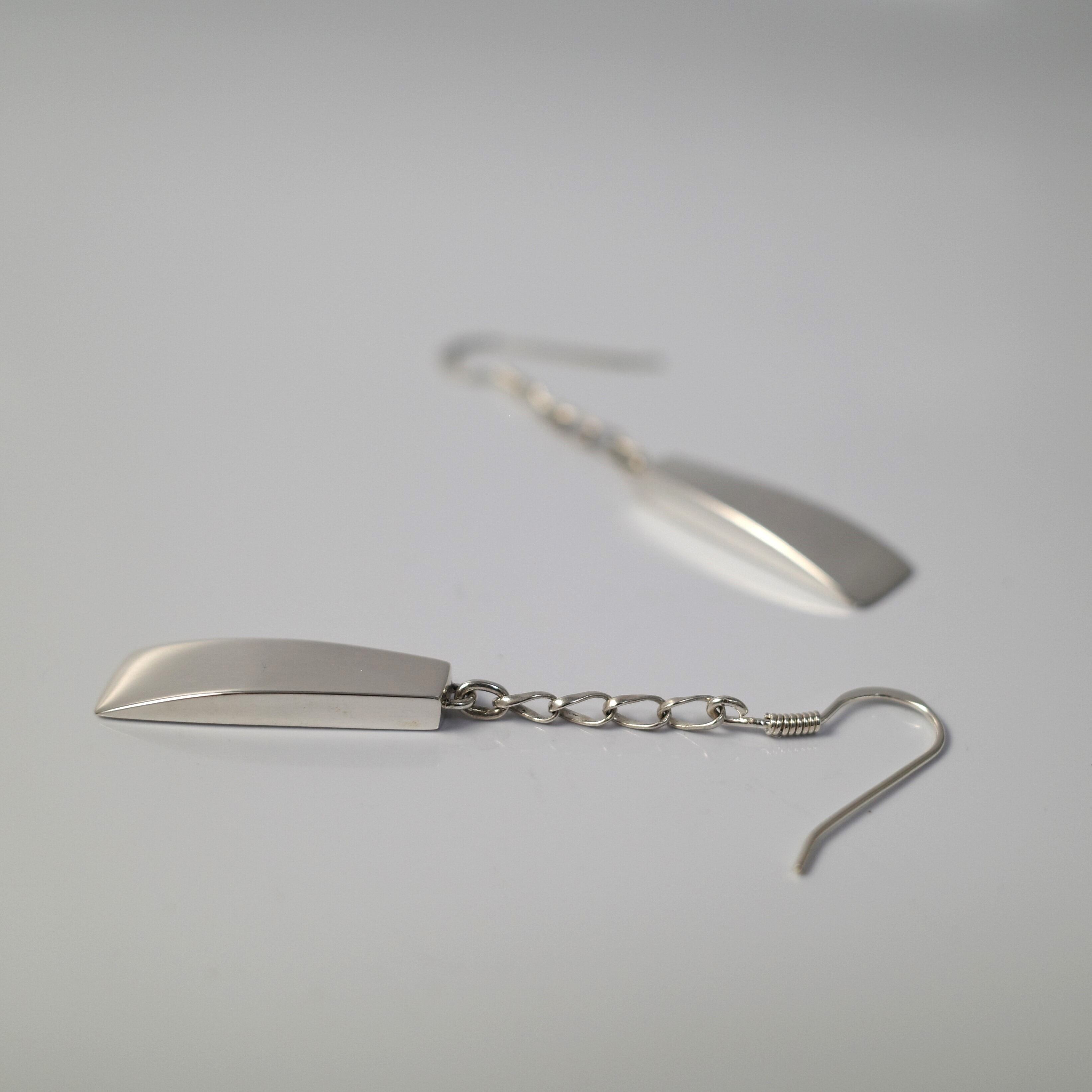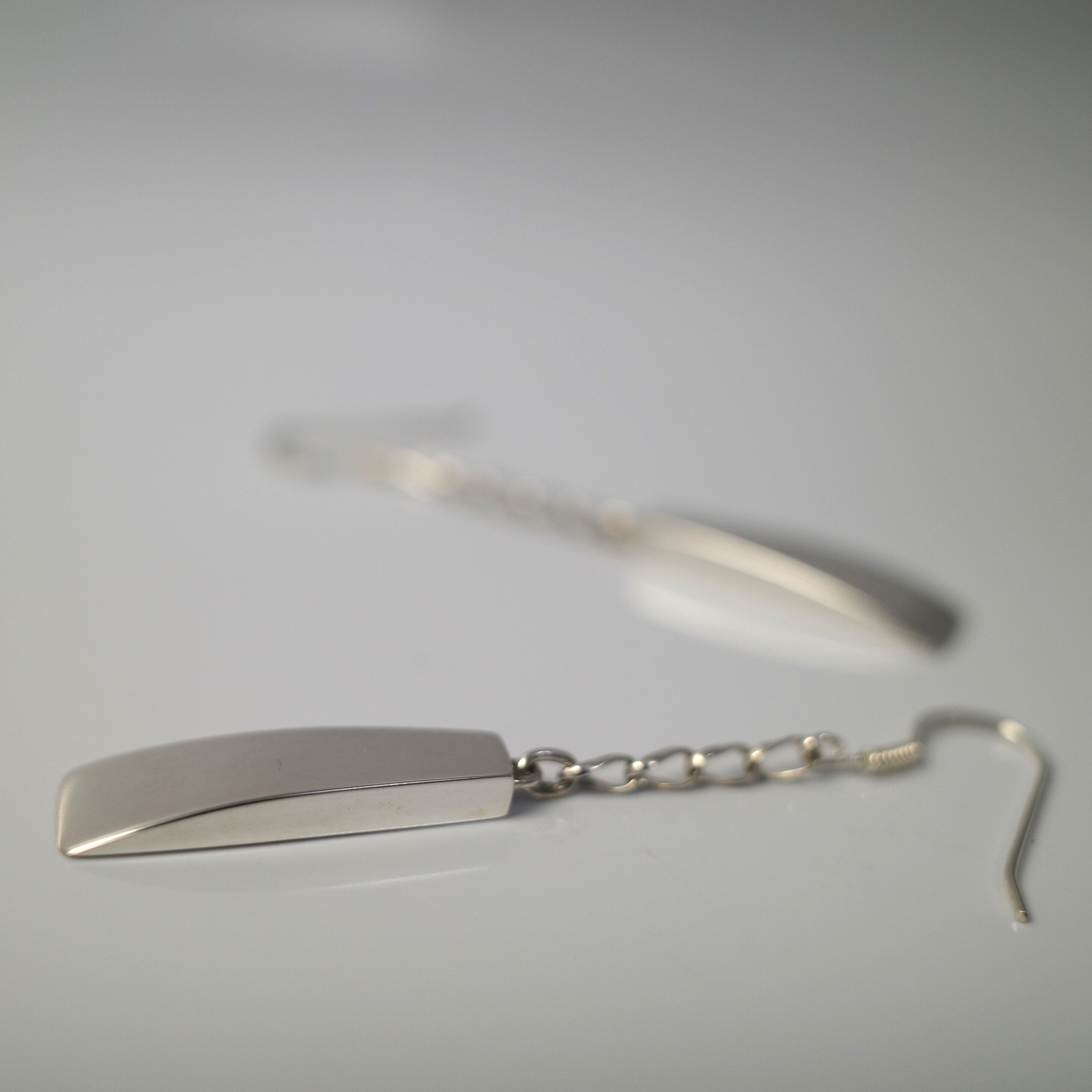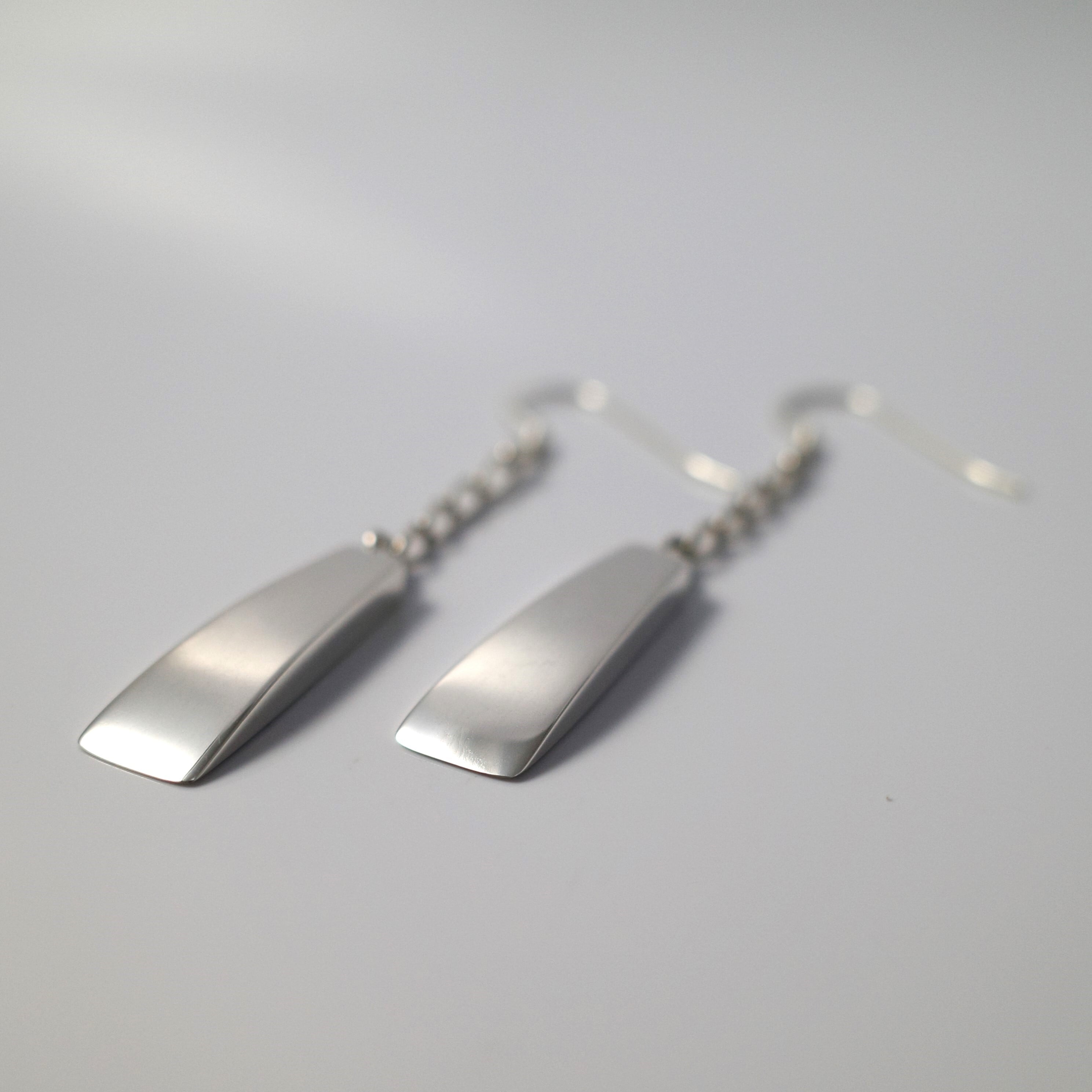 鏡面仕上げが光を受けて繊細に輝き、チェーンの揺れが耳元にやわらかな動きを生み出します。