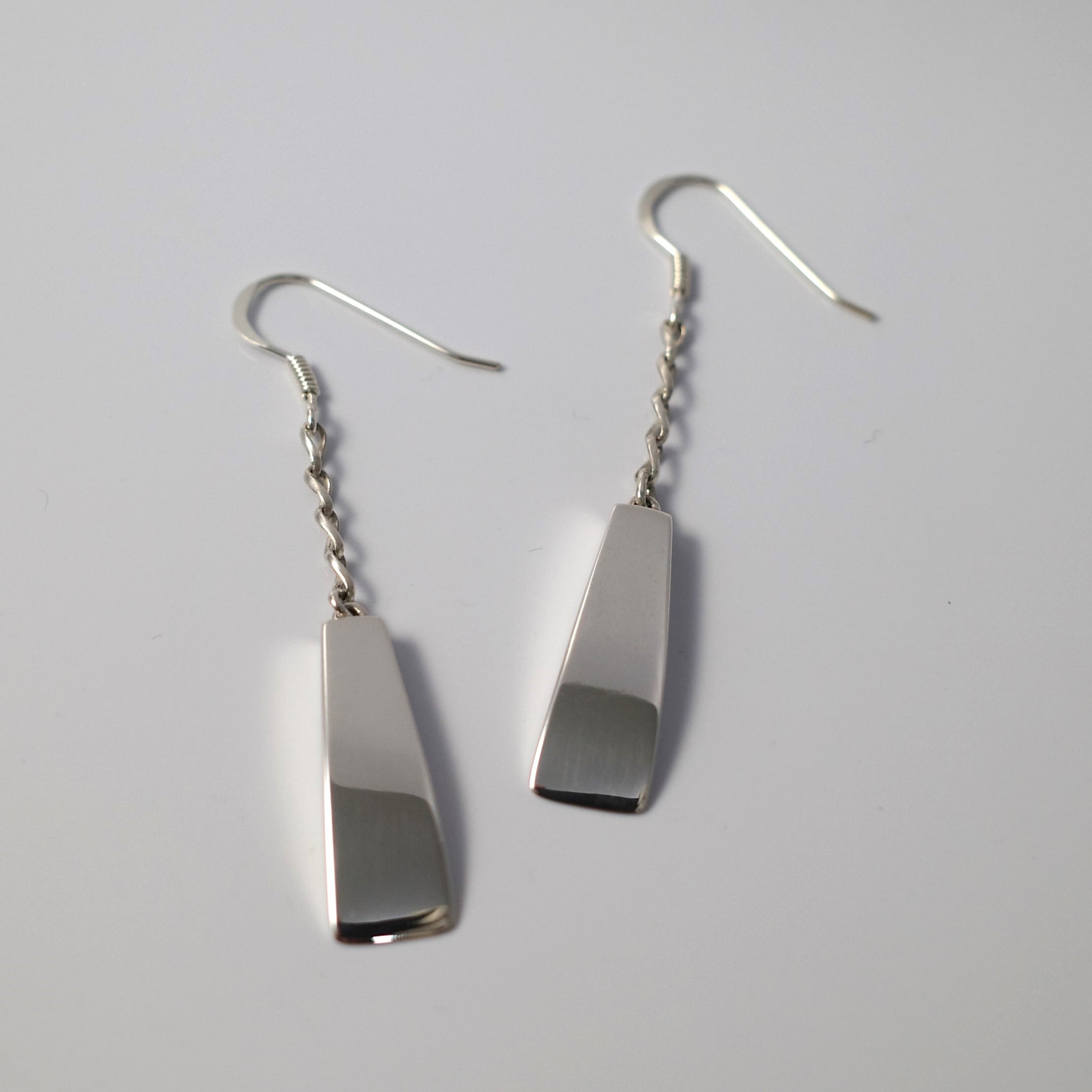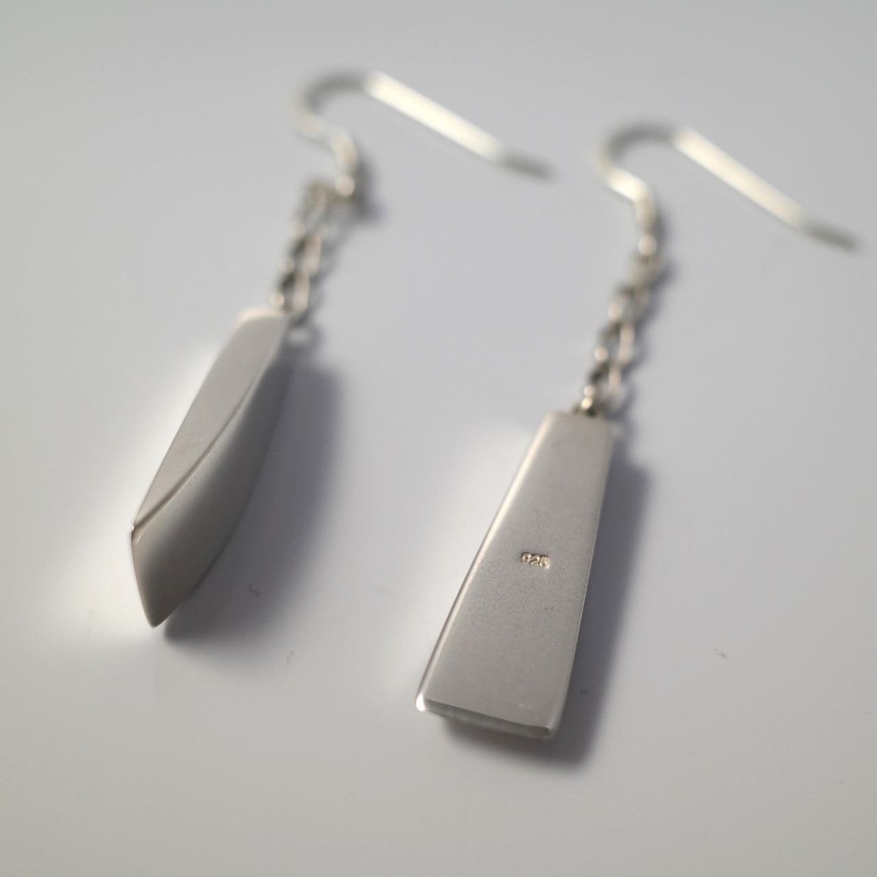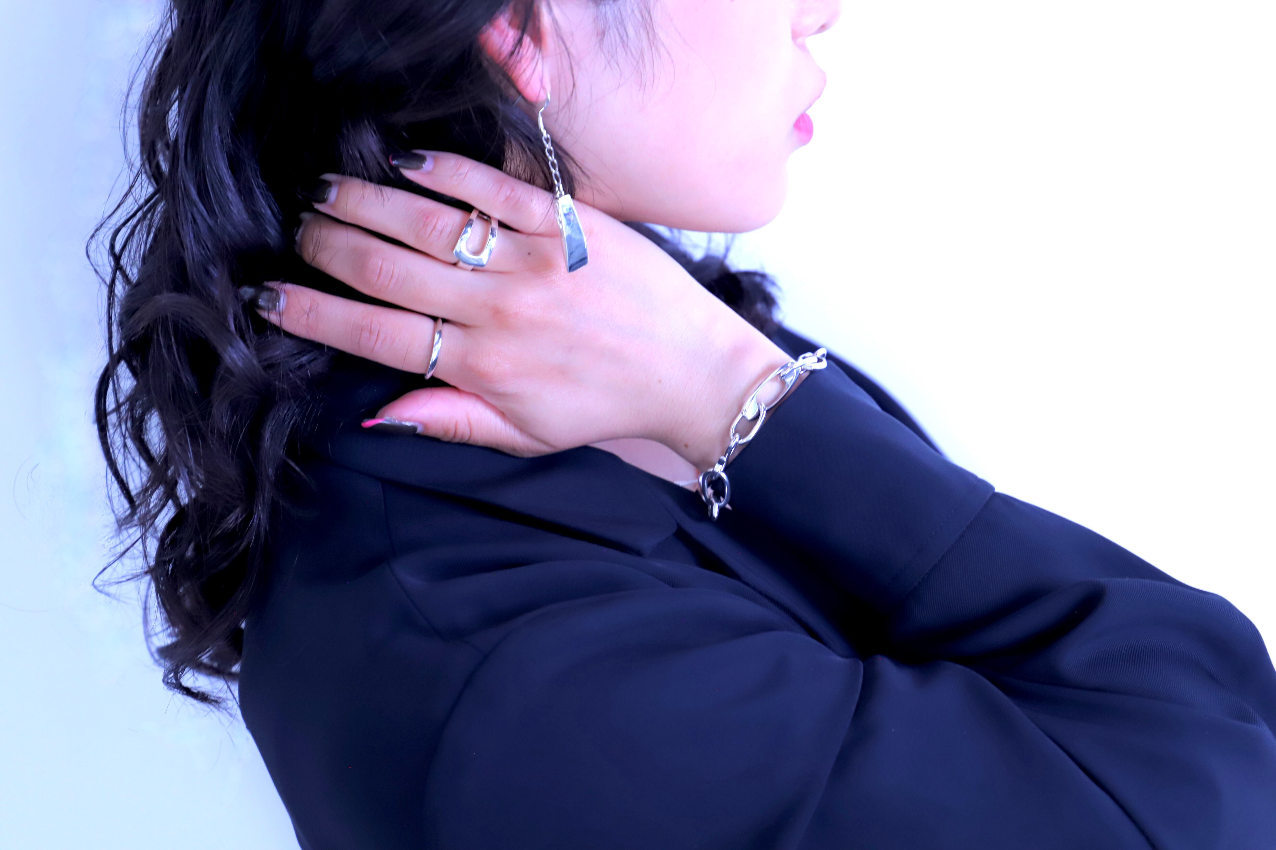 鏡面仕上げが光を受けて繊細に輝き、チェーンの揺れが耳元にやわらかな動きを生み出します。