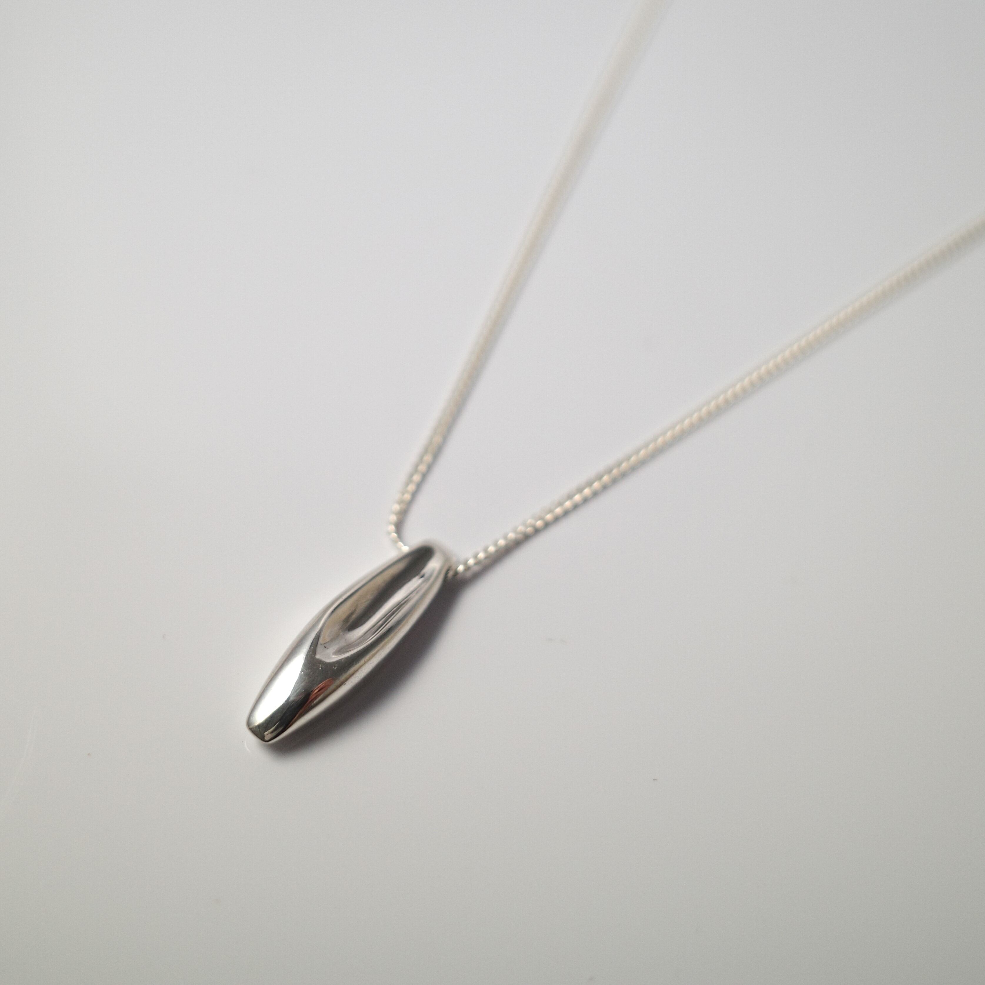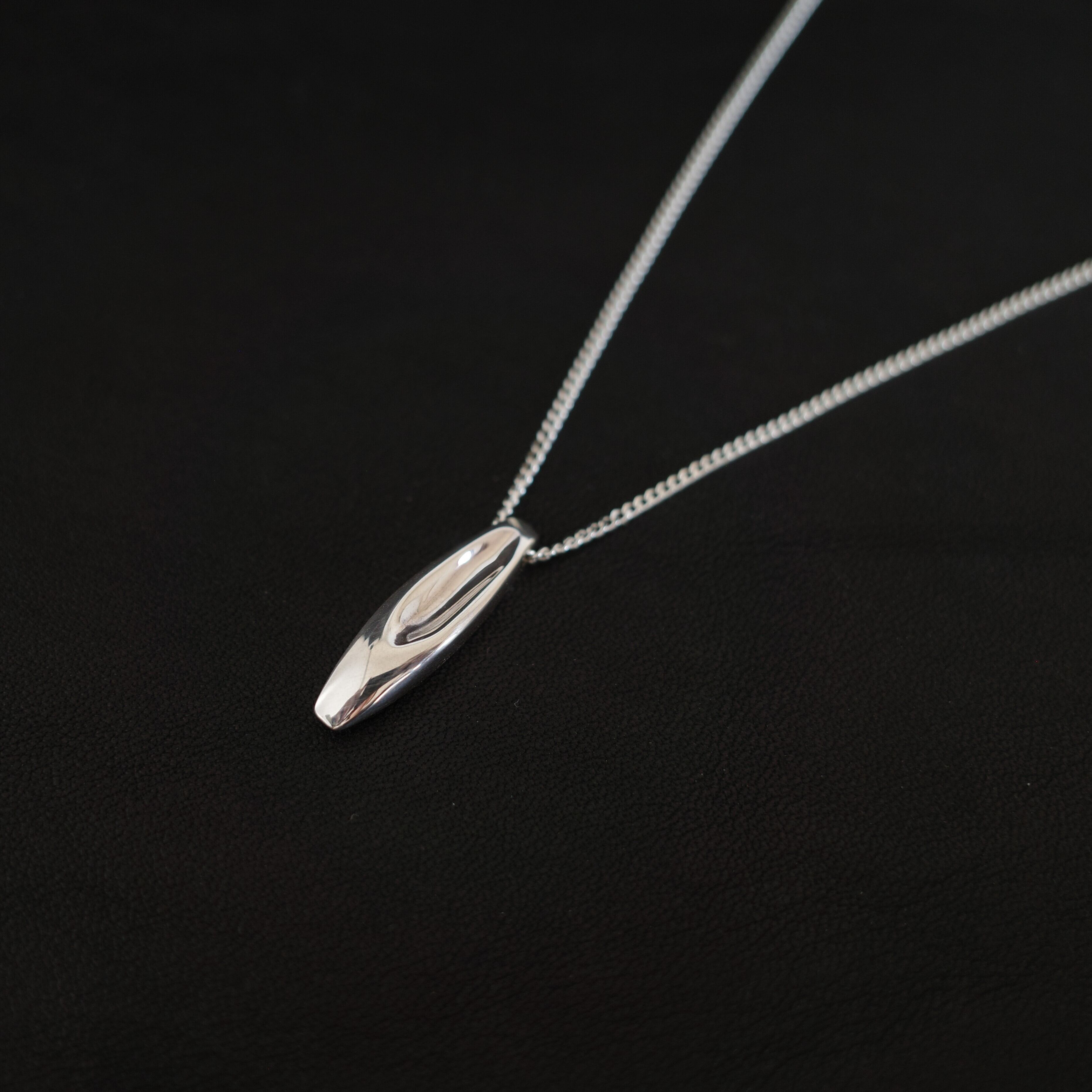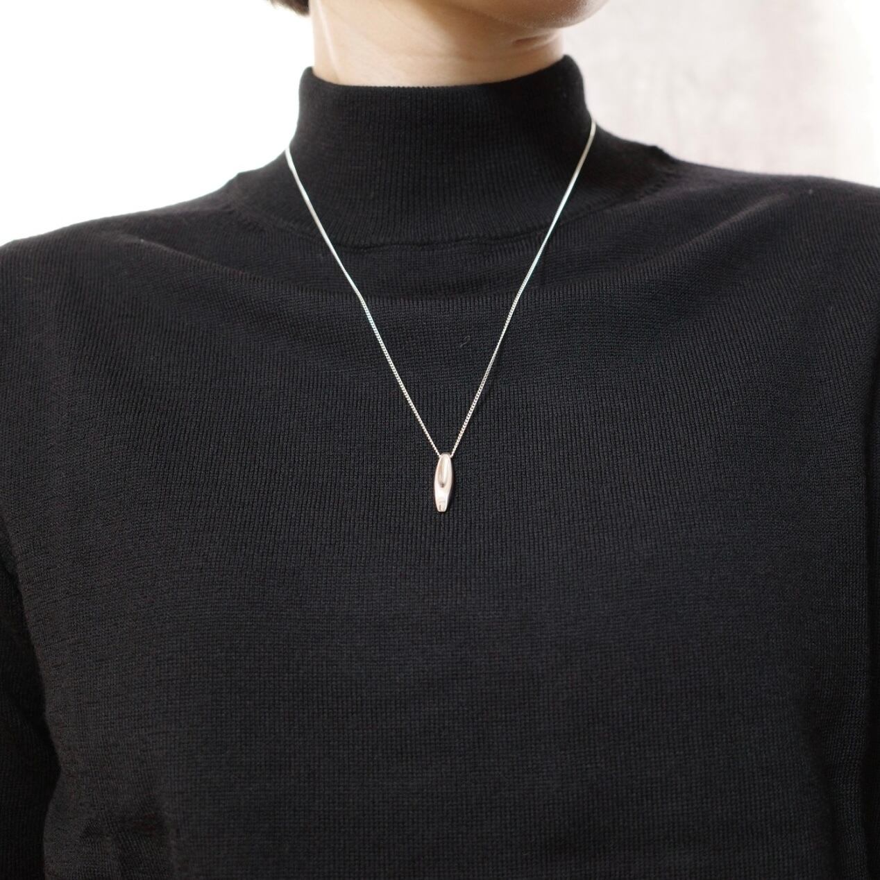 首元に余裕があり、シャツの上からでもTシャツの中でも美しく決まります。