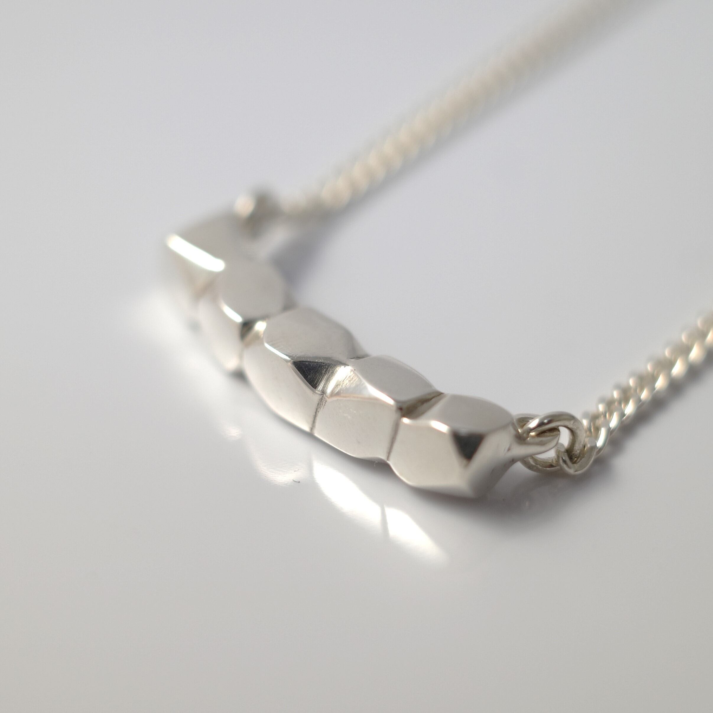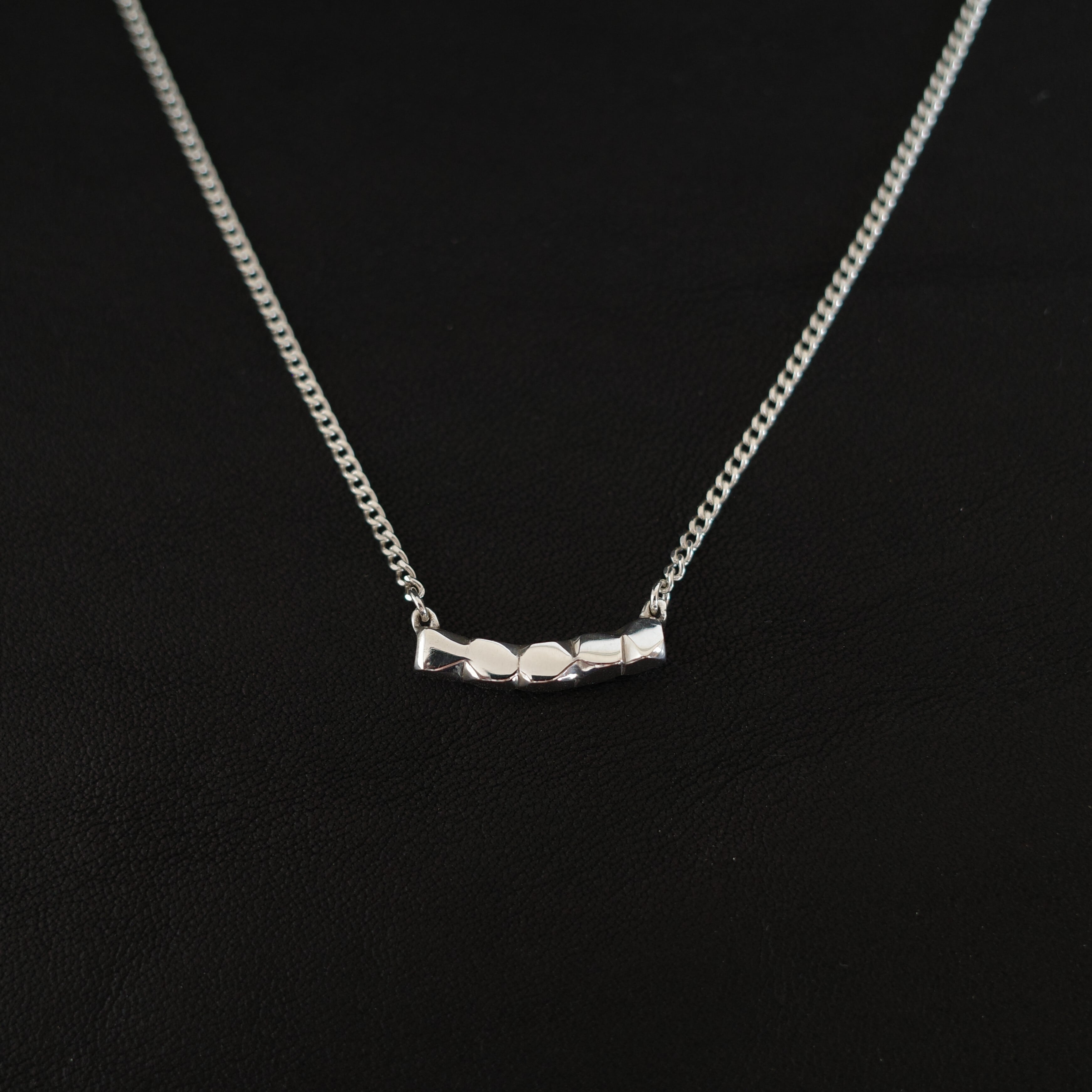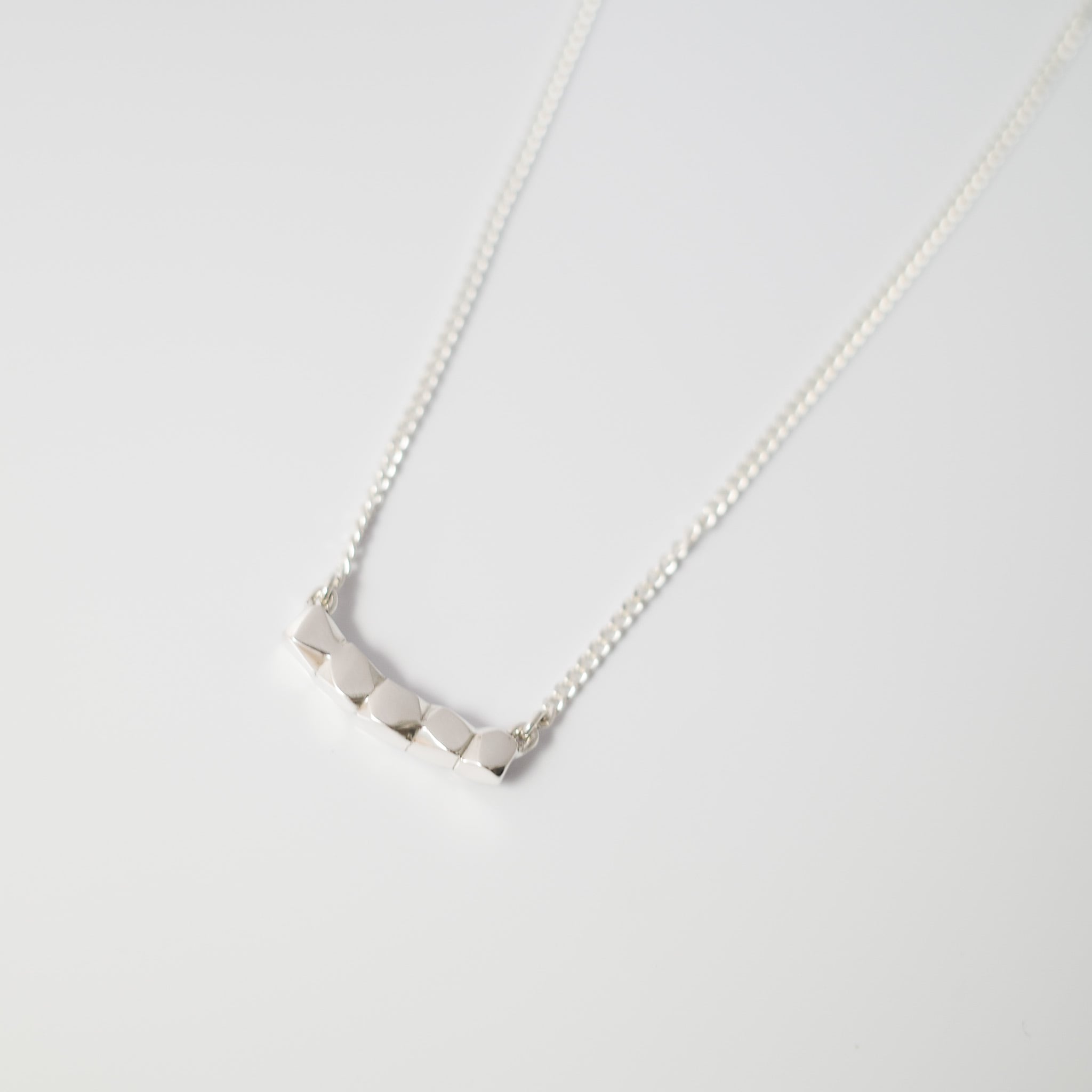 5つの粒がリズムよく並んだ、シンプルながら表情のあるネックレス。