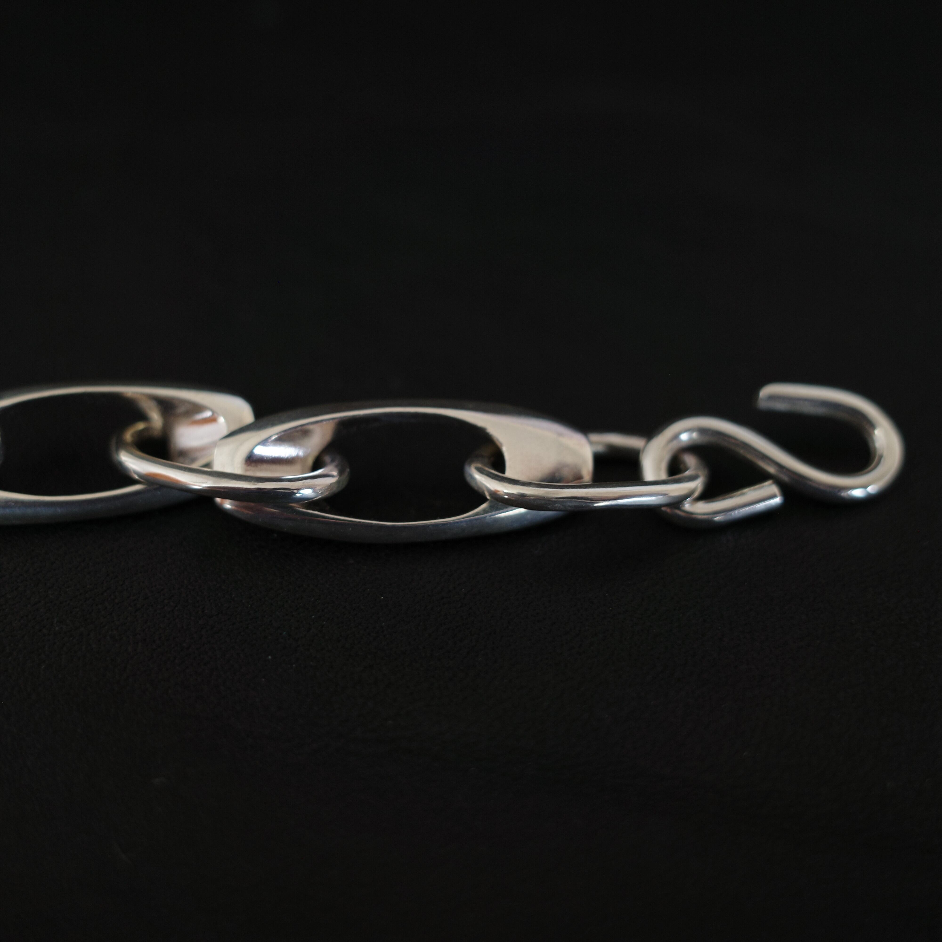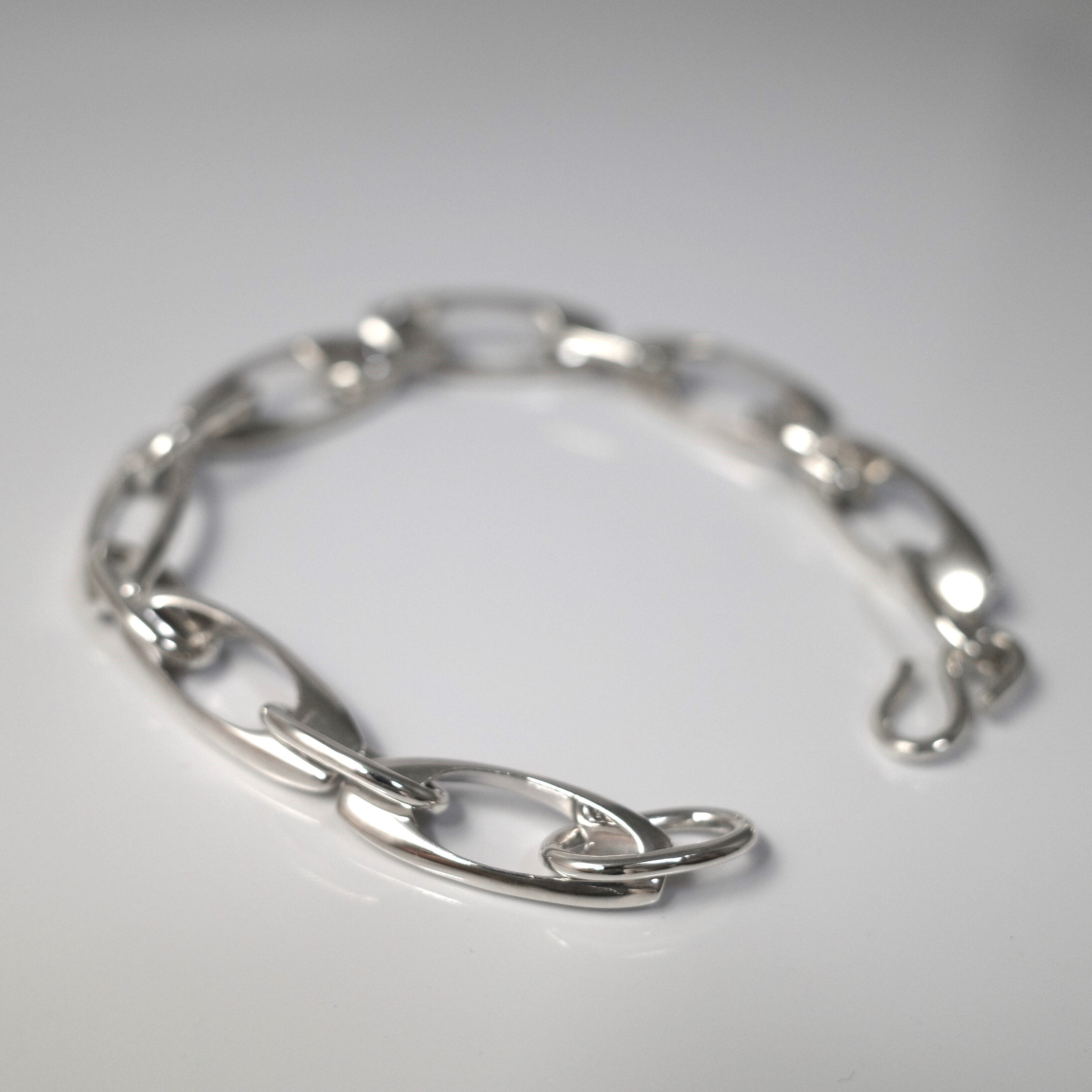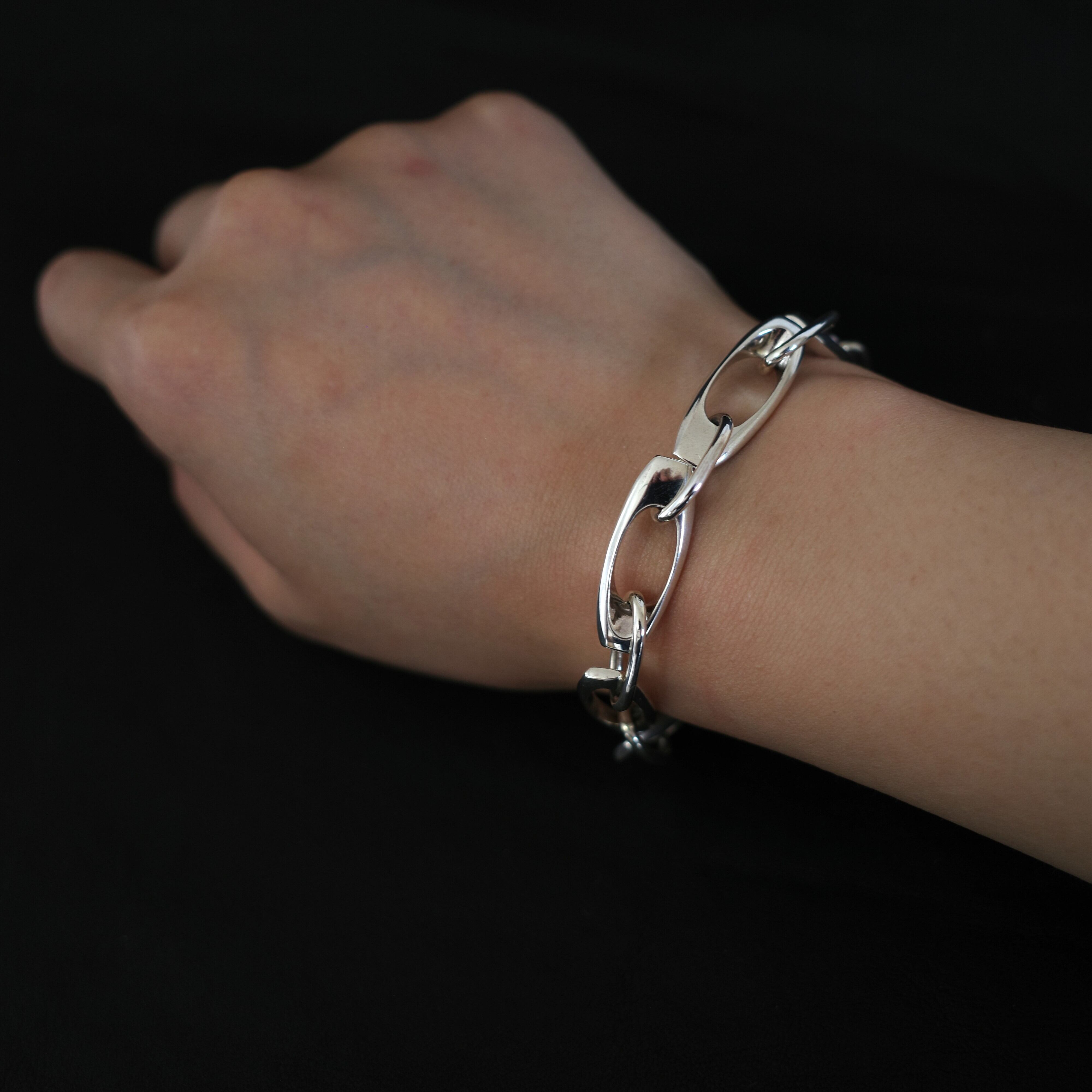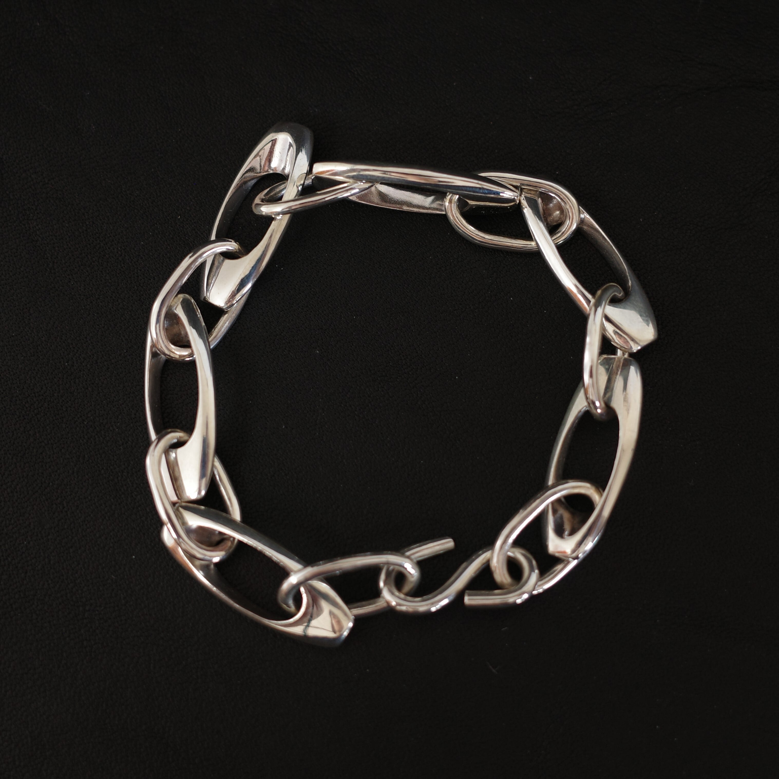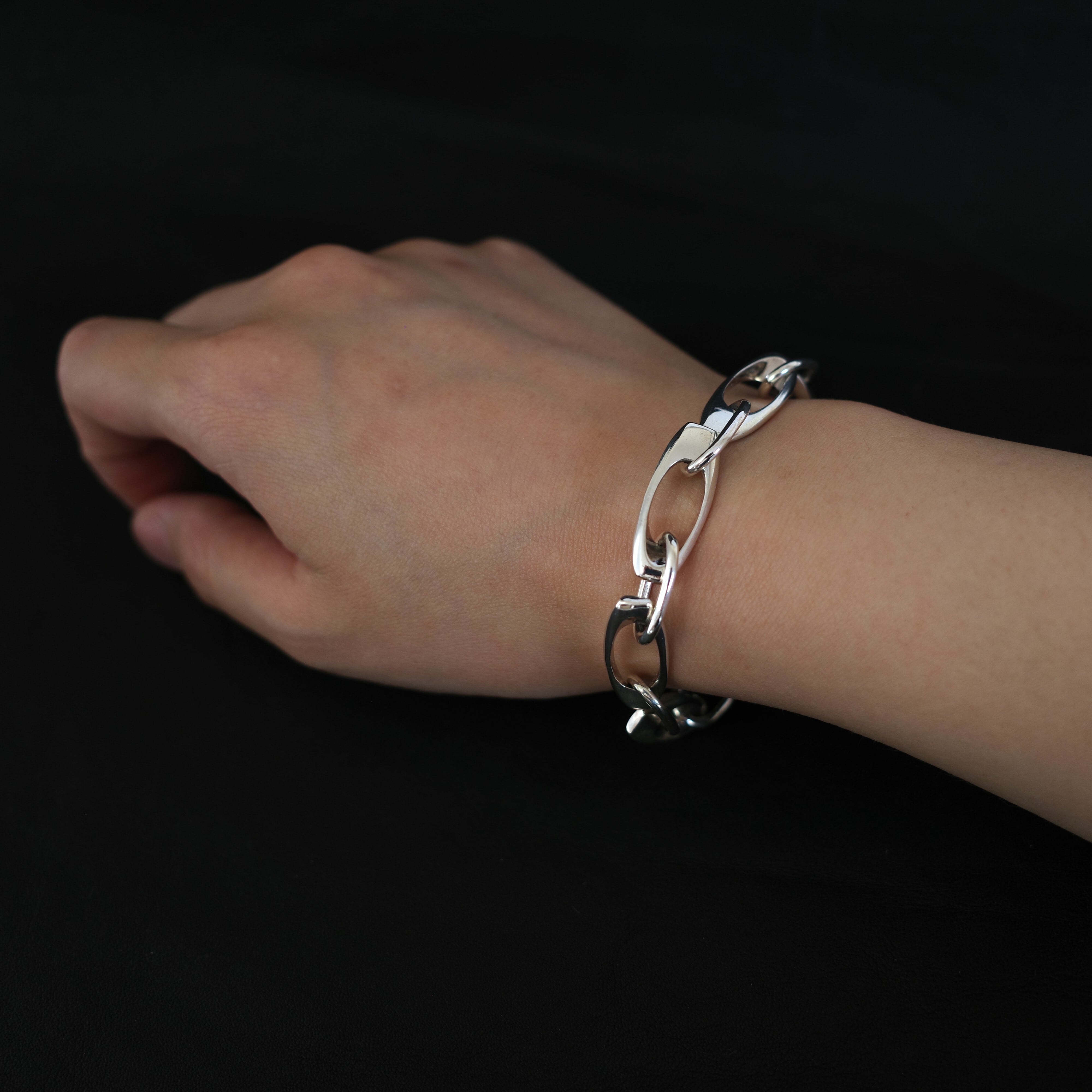 2種類の異なるコマをリズムよく繋げた、表情豊かなチェーンブレスレット。