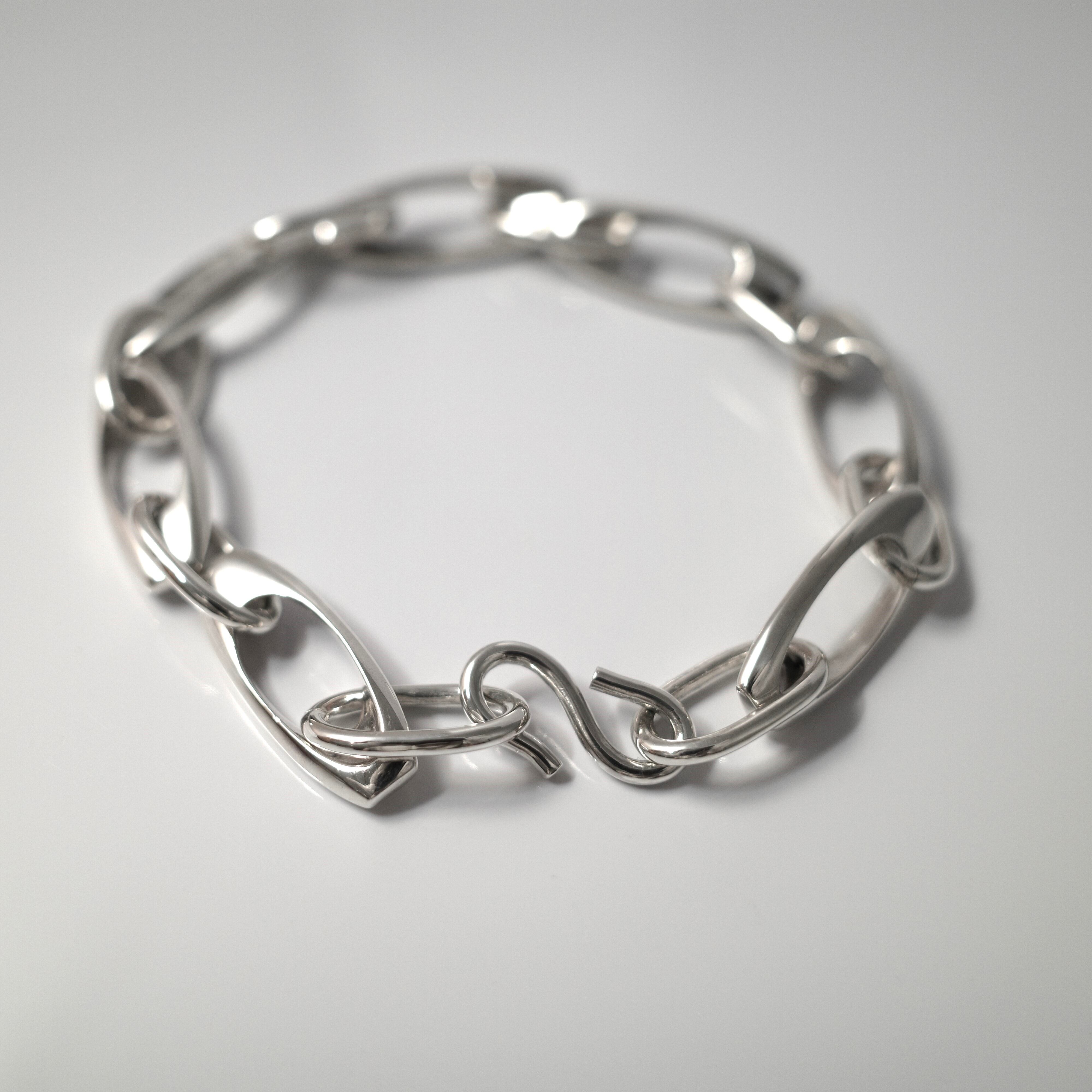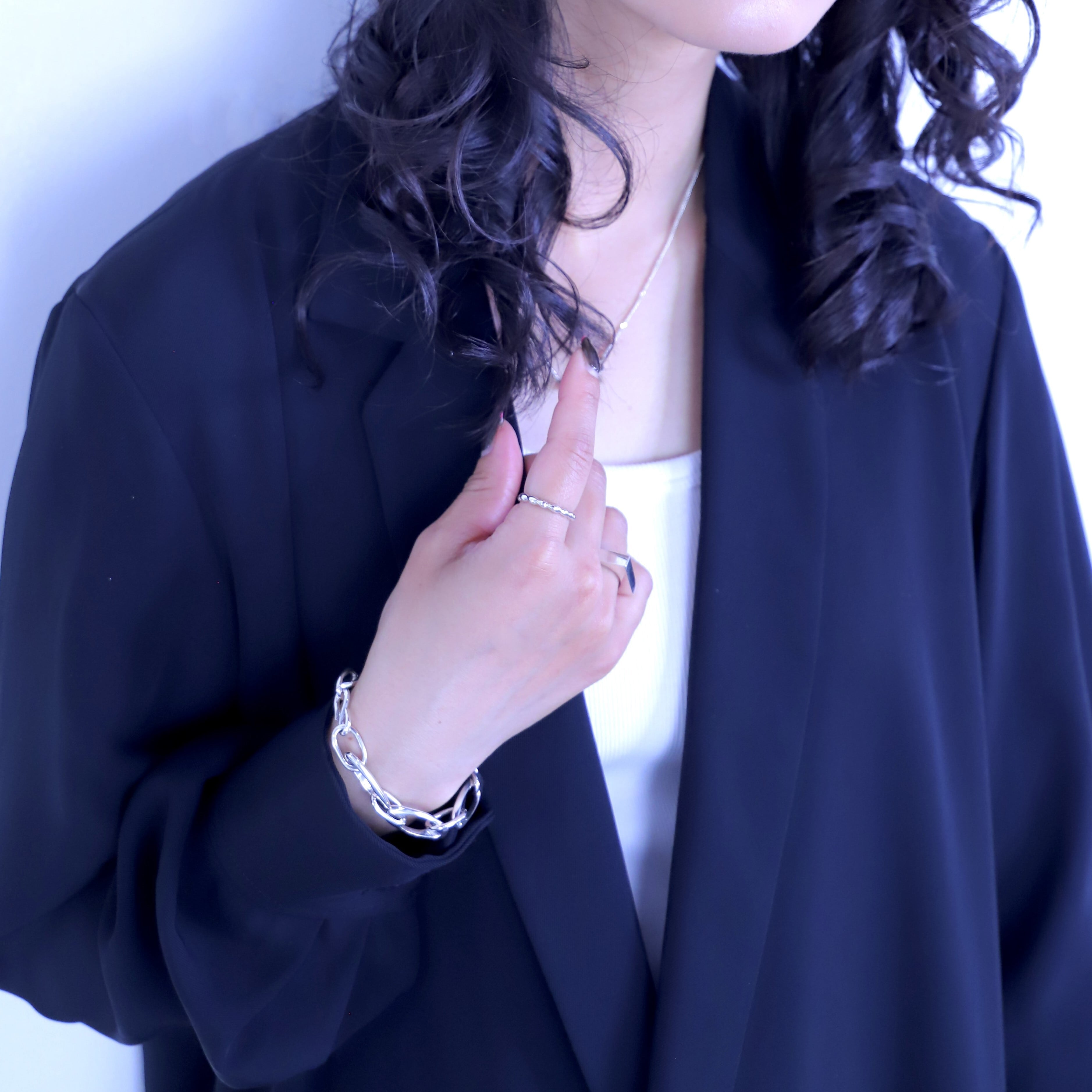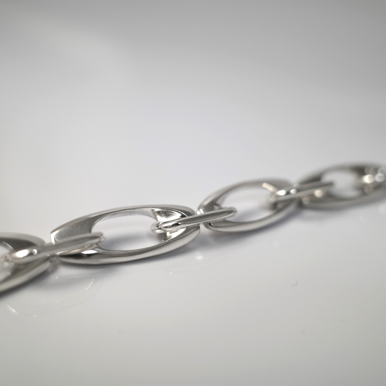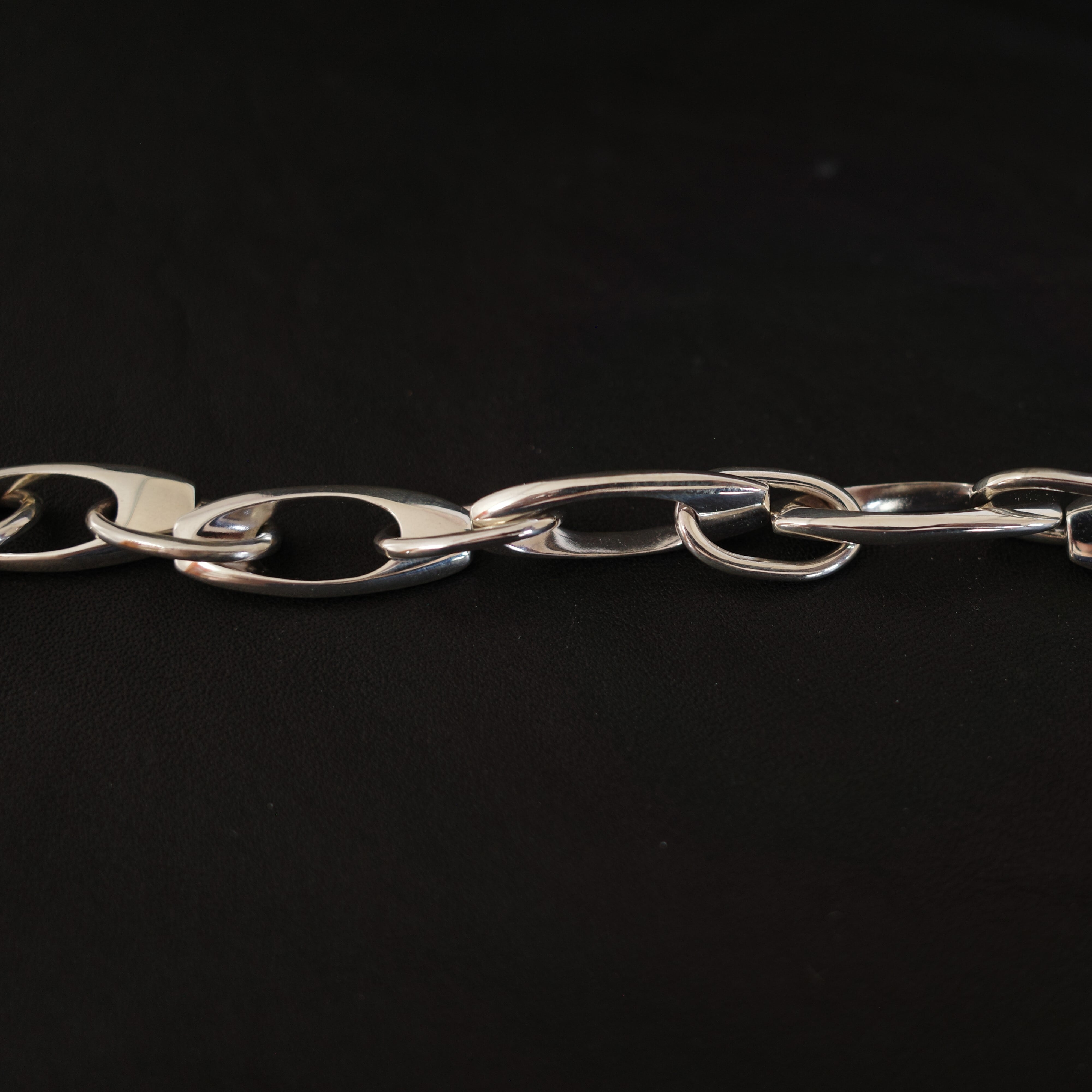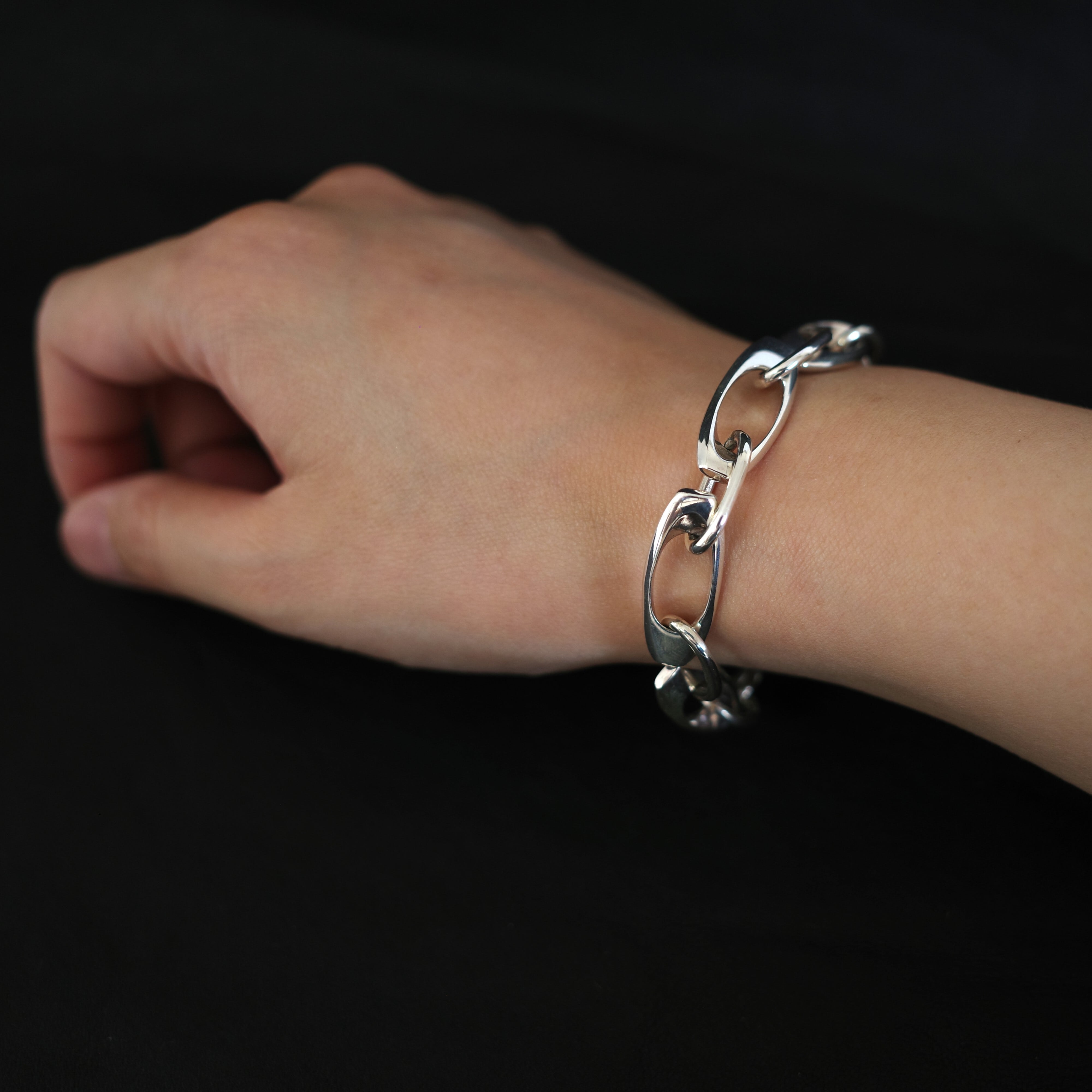 2種類の異なるコマをリズムよく繋げた、表情豊かなチェーンブレスレット。