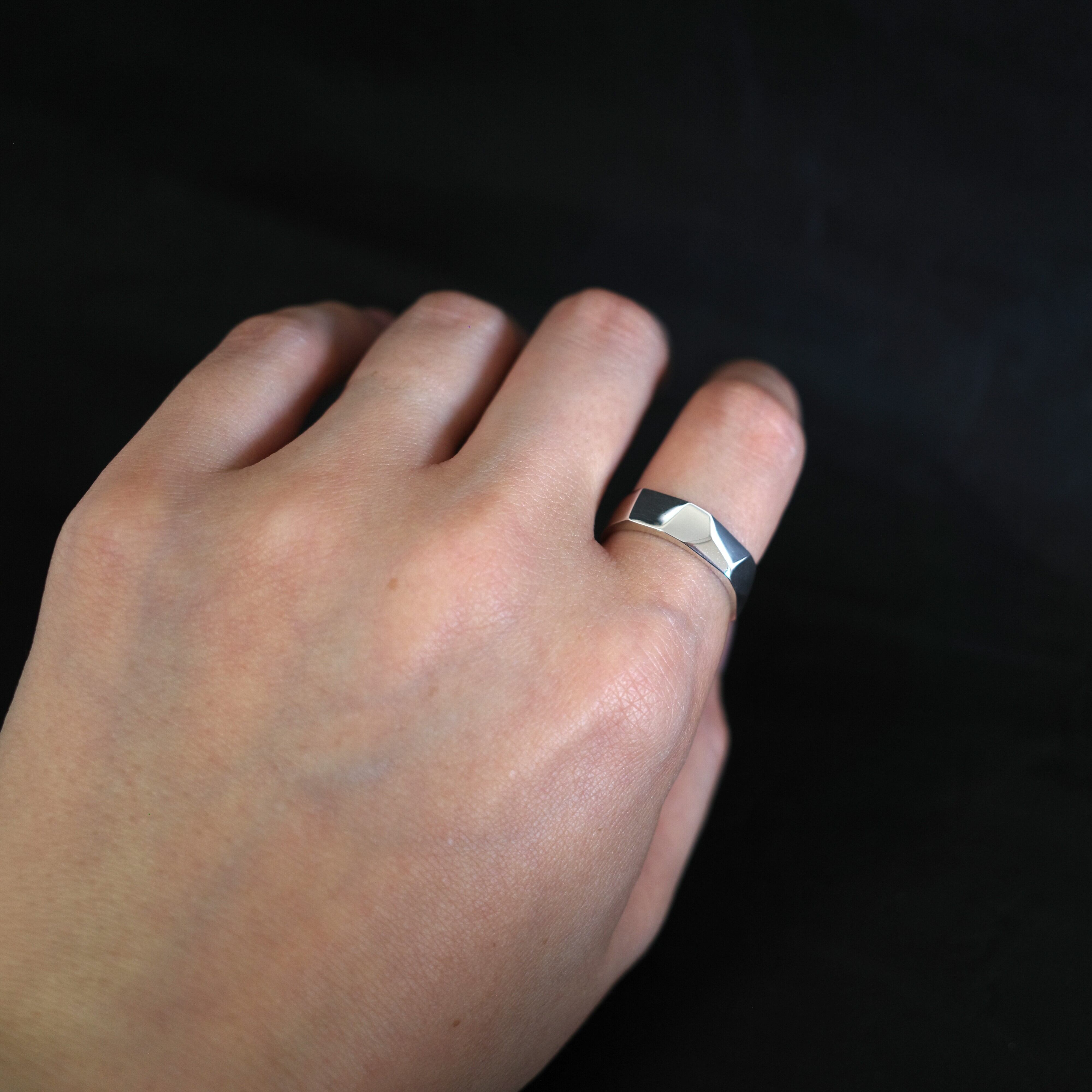 丁寧に施した鏡面仕上げが、光を美しく反射し、存在感を引き立てます。